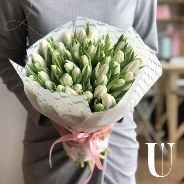 Монокопозиция из белой гипсофилы в глянцевой пленке