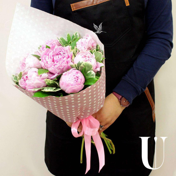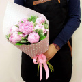 Монобукет из пионовидных роз сорта Лондон Ай в упаковке