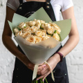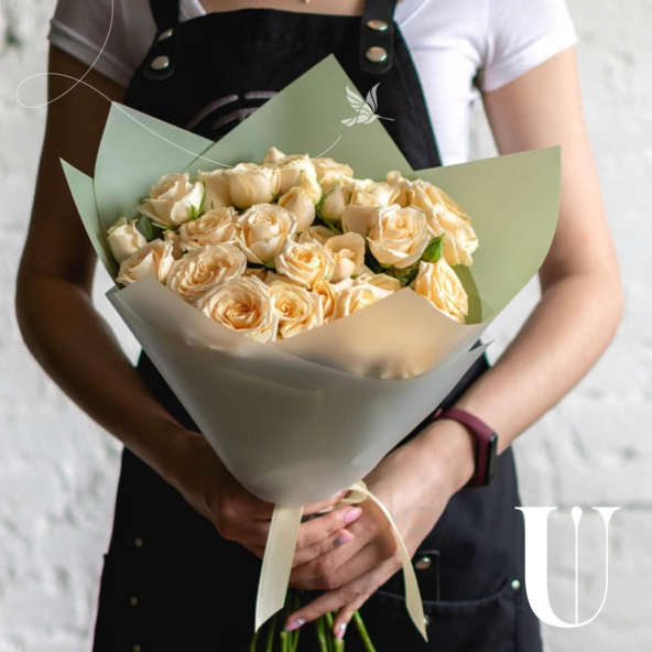 Кремовый монобукет из 19 роз сорта Талея в дизайнерской упаковке
