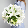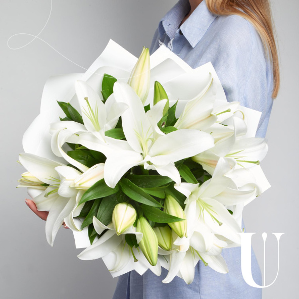 Букет из 15 белых тюльпанов в дизайнерской упаковке