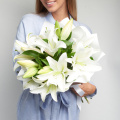Монобукет из 51 белой розы в дизайнерской упаковке