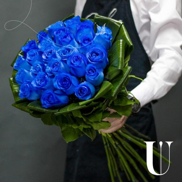 Монобукет из 13 роз сорта Эксплорер 60 см в дизайнерской упаковке