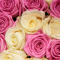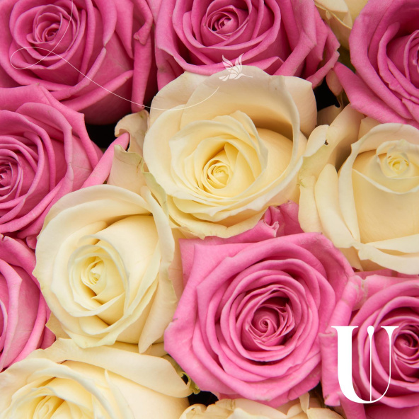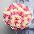 Букет из белых роз Аваланж 60 см и розовых кустовых роз Лидия 60 см в дизайнерской упаковке