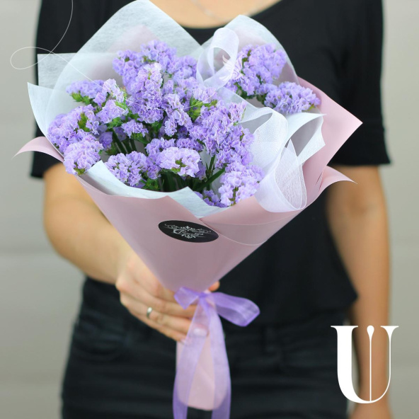 Букет фиолетовой гортензии в фиолетовой упаковке