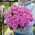 Монобукет из 51 белой розы Аваланж 40 см в глянцевой пленке