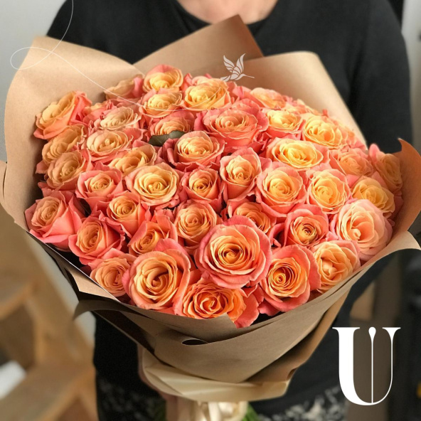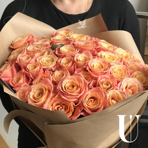 Монобукет из 15 роз сорта Талея в крафтовой упаковке