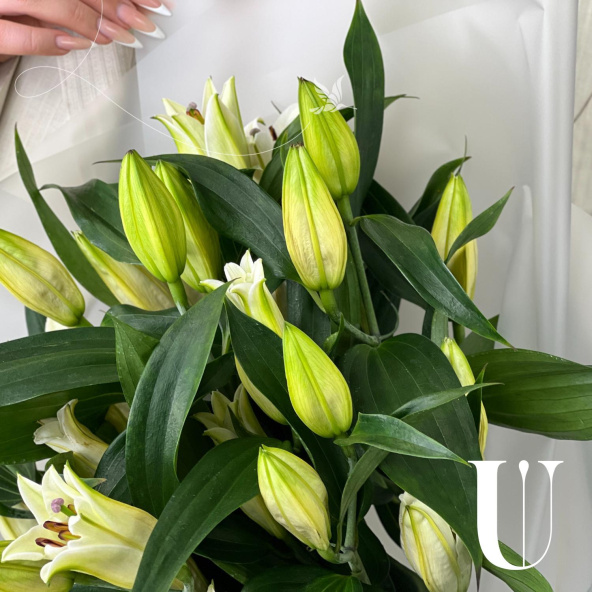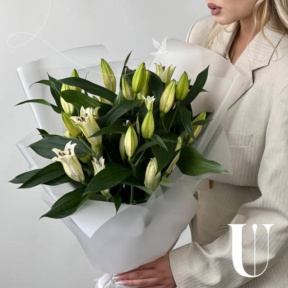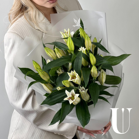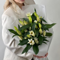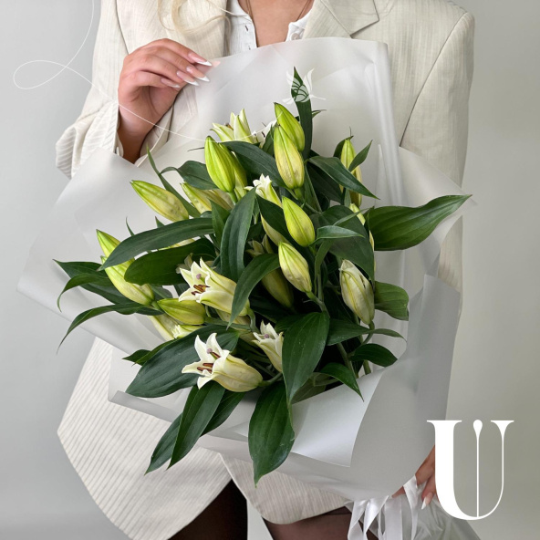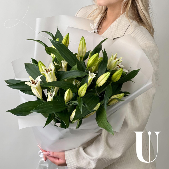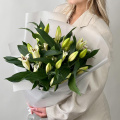 Букет из сортовых лилий упакованных в шелковую пленку. Обращаем Ваше внимание, что бутоны Лилий могут быть не такими раскрытыми как на фото, а раскроются в вазе у получателя и будут радовать долгое время !