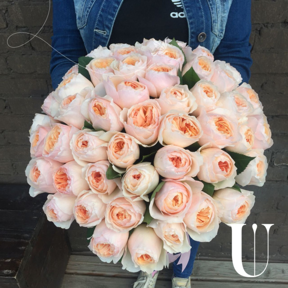 Роза пионовидная джульетт - 51 шт, салал.