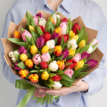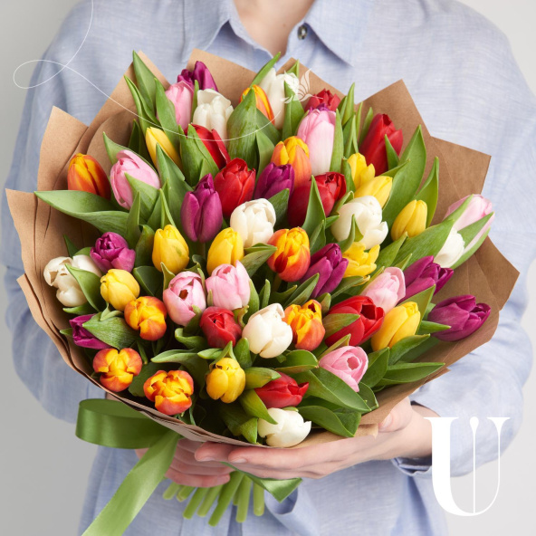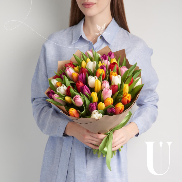 Монобукет из альстромерий микс в дизайнерской упаковке