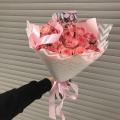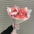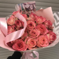 Букет из 11 розовых кустовых роз в дизайнерской бумаге