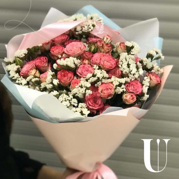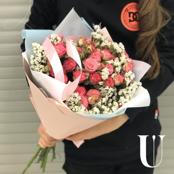 - Статица - 5шт.Красивый букет из кустовых роз интересного оттенка и пушистой статицы. Порадует и принесёт много хорошего настроения. Кустовые розы очень любимы девушками. Вы сумеете произвести впечатление