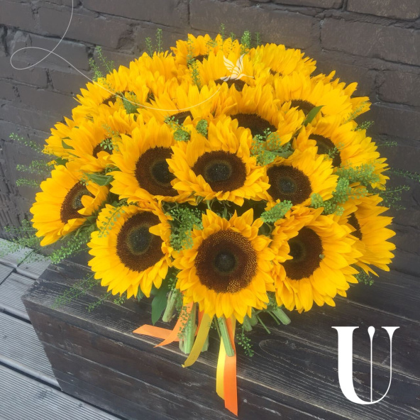 Большой букет из 51 оранжевой розы в стильной упаковке