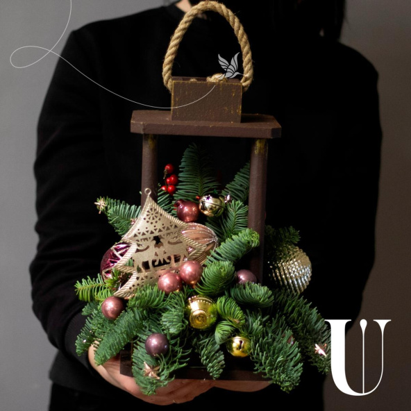 - Уютная композиция в деревянном фонаре. Состав: Фонарь деревянный