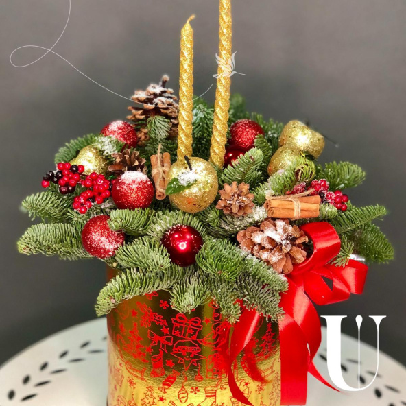 - Шляпная коробка золотая (выс. 25 см, диам. 20 см) - 1 шт