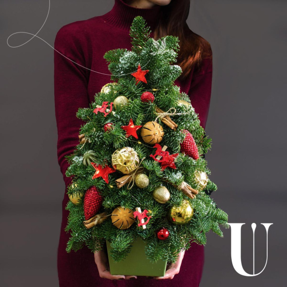 - Собрана в ручную по веточке нашими флористами. Она идеальной формы и почти не осыпается. Не требует дополнительного ухода. Украшана в красно-золотой теплой гамме, декор может незначительно отчичаться