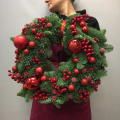 - Украшен декоративными новогодними элементами. Диаметр 38-40 см. Имеет петельку. Не осыпается