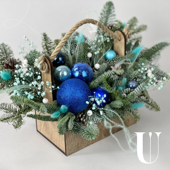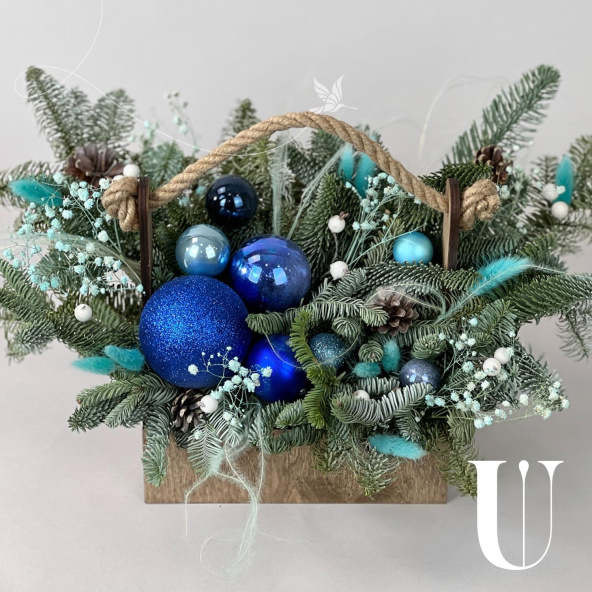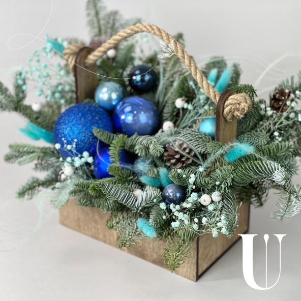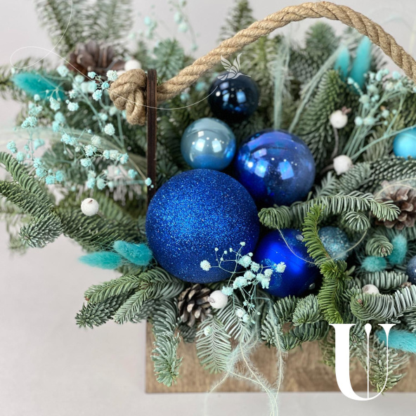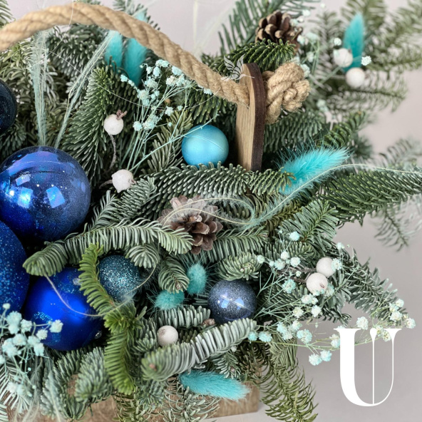 Новогодняя Композиция из живой ели нобилис. Лапник нобилиса отличается высокой стойкостью, он совсем не осыпается, а слегка и незаметно подсыхает сохраняя красивый внешний вид. Композиция из такой ели будет радовать Вас больше месяца и простоит все новогодние праздники!