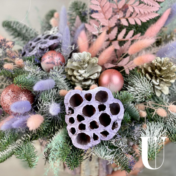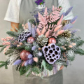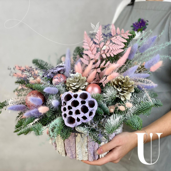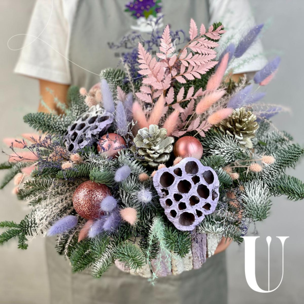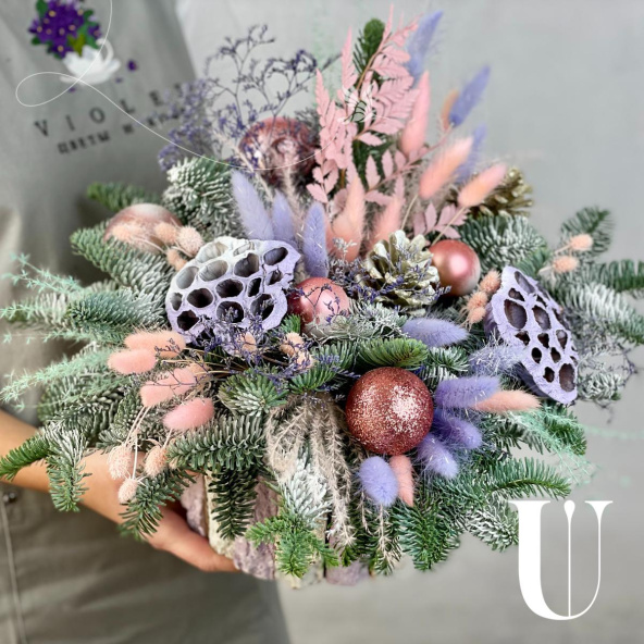 Новогодняя Композиция из живой ели нобилис. Лапник нобилиса отличается высокой стойкостью, он совсем не осыпается а слегка и незаметно подсыхает сохраняя красивый внешний вид. Композиция из такой ели будет радовать Вас больше месяца и простоит все новогодние праздники!