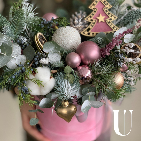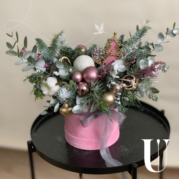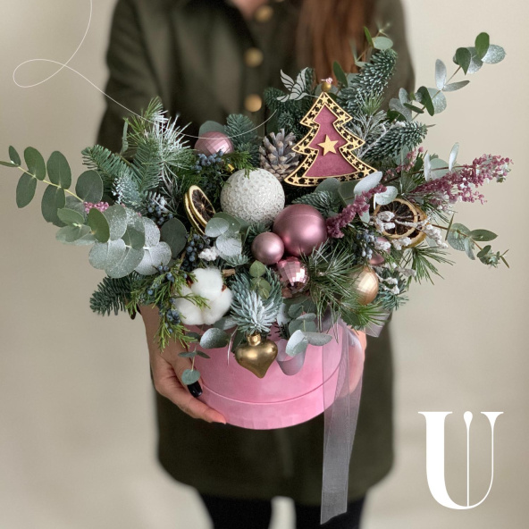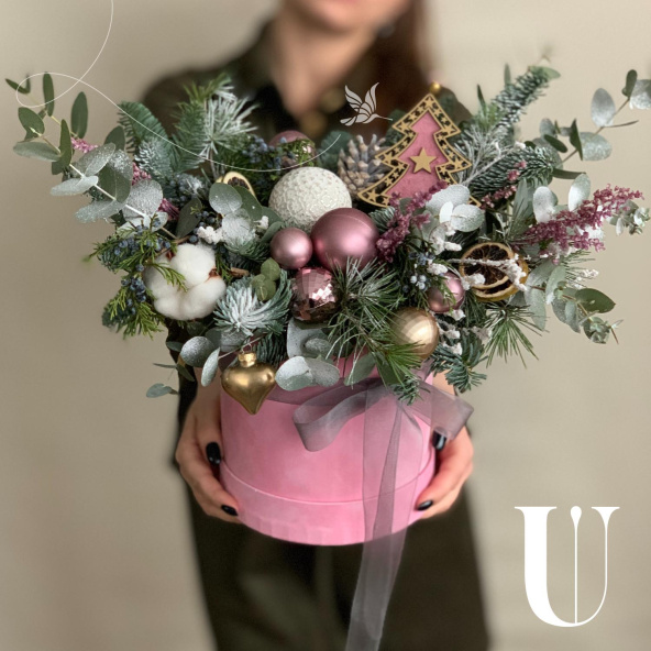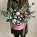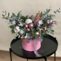 - Шляпная коробка бархатная, нежно-розовая (выс.16 см, диам.16 см) - 1 шт