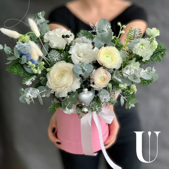- Шляпная коробка, нежно-розовая (выс. 17 см, диам. 14 см) - 1 шт
