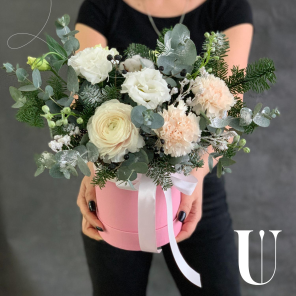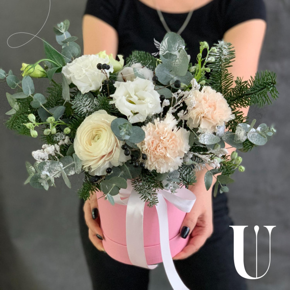 - Шляпная коробка, нежно-розовая (выс. 17 см, диам. 14 см) - 1 шт