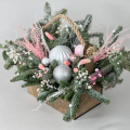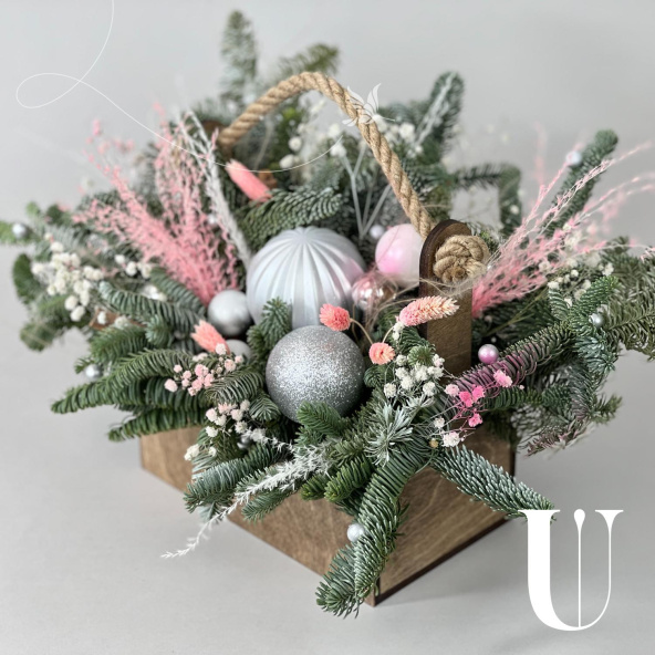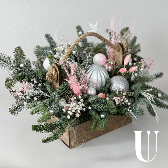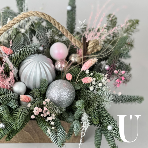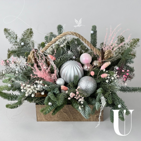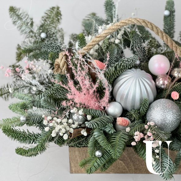 Новогодняя Композиция из живой ели нобилис. Лапник нобилиса отличается высокой стойкостью, он совсем не осыпается, а слегка и незаметно подсыхает сохраняя красивый внешний вид. Композиция из такой ели будет радовать Вас больше месяца и простоит все новогодние праздники!