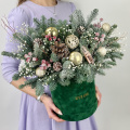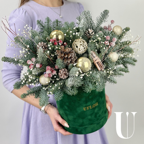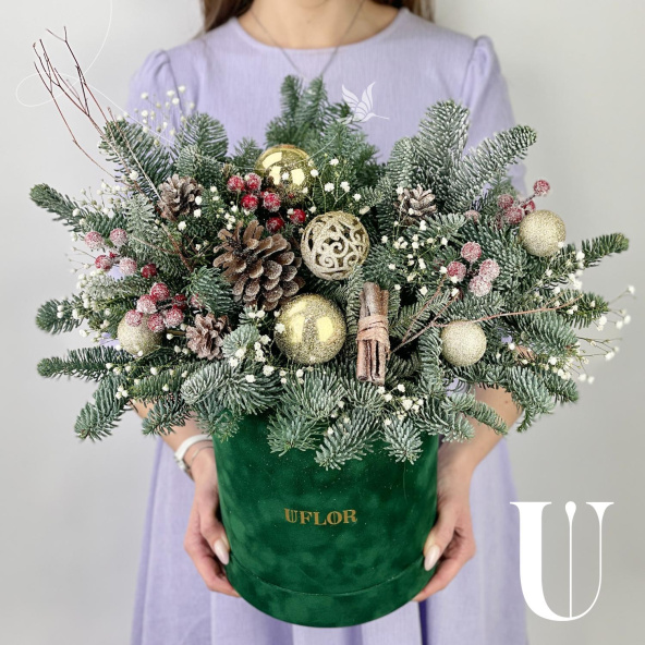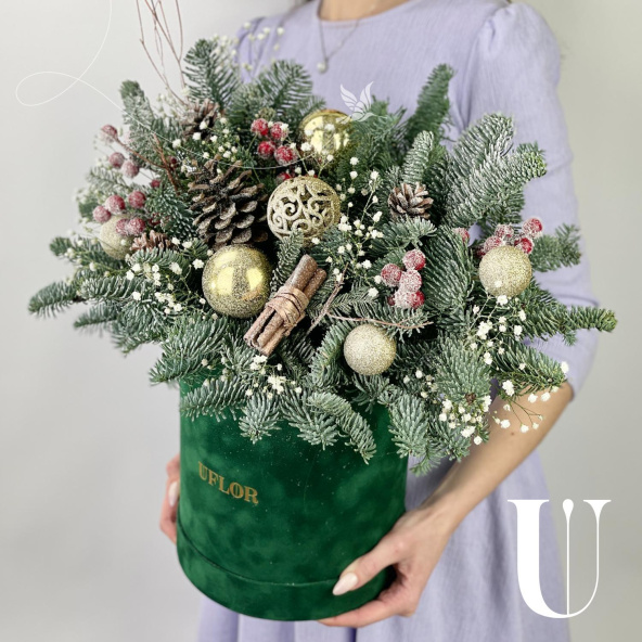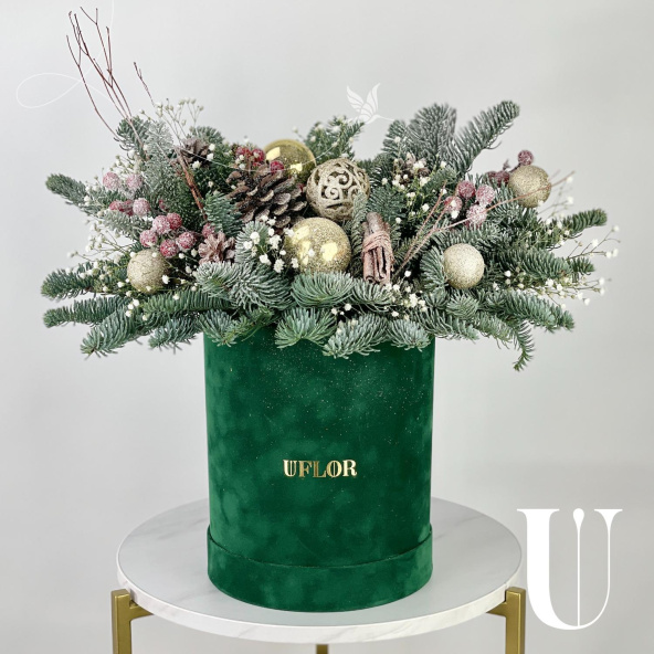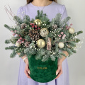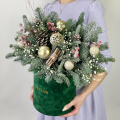 - Шляпная коробка бархатная (U), тёмно-зелёная (выс. 25 см, диам. 20 см) - 1 шт