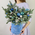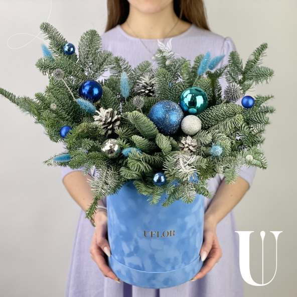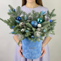 - Шляпная коробка бархатная (U), голубая (выс. 25 см, диам. 20 см) - 1 шт