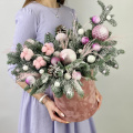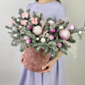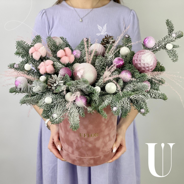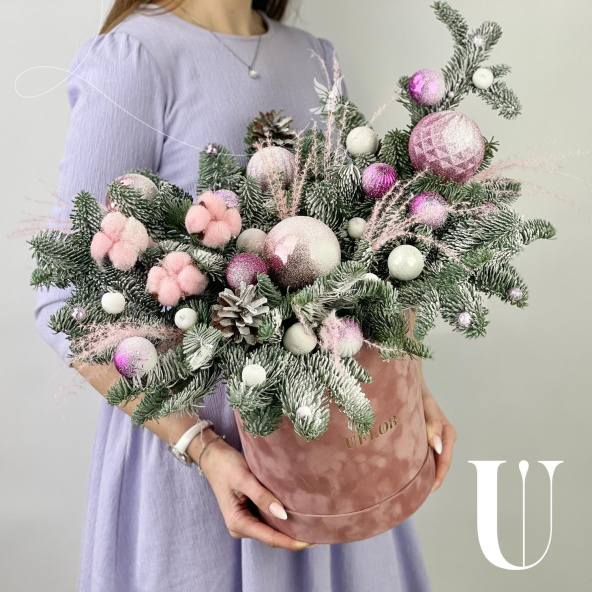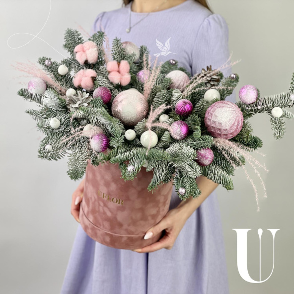 - Шляпная коробка бархатная (U), пыльно-розовая (выс. 25 см, диам. 20 см) - 1 шт