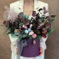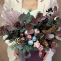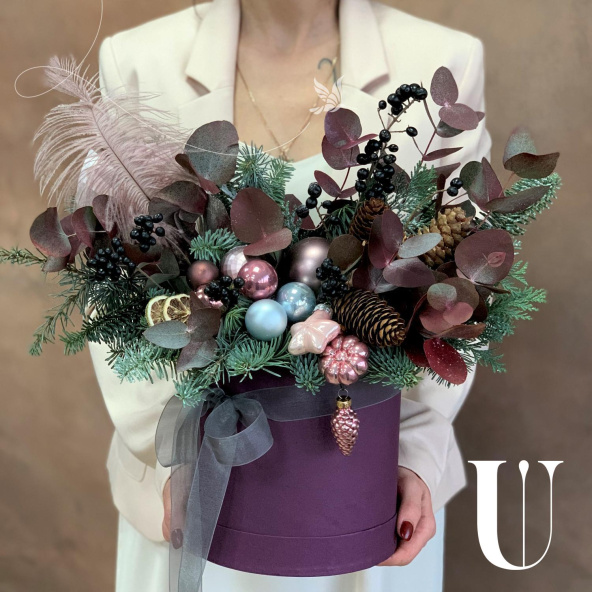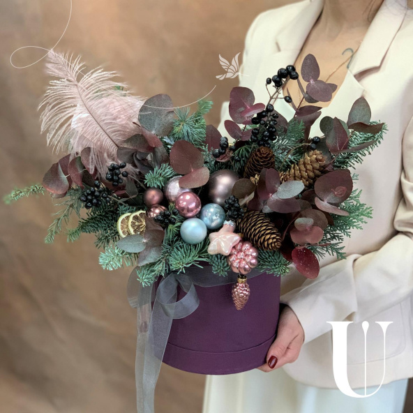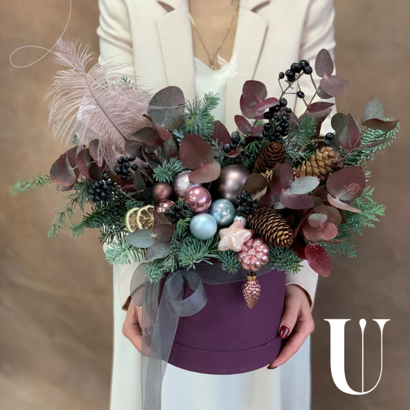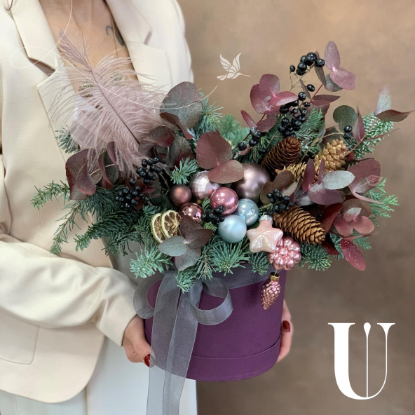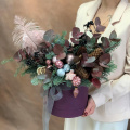 - Шляпная коробка бархатная, нежно-розовая (выс.16 см, диам.16 см) - 1 шт