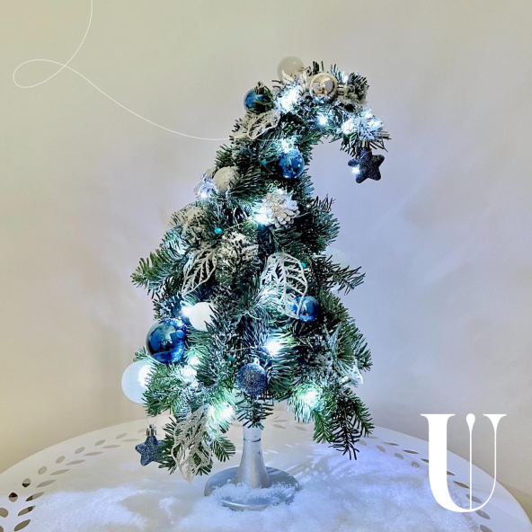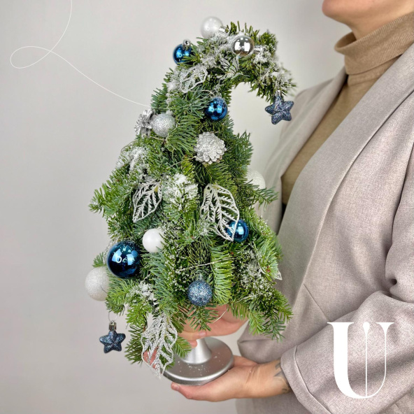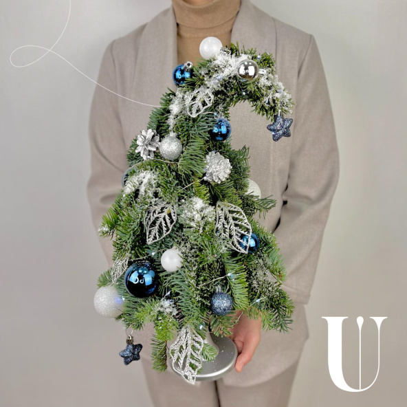 Авторская ёлочка с огоньками, выполненная из натуральных еловых веточек