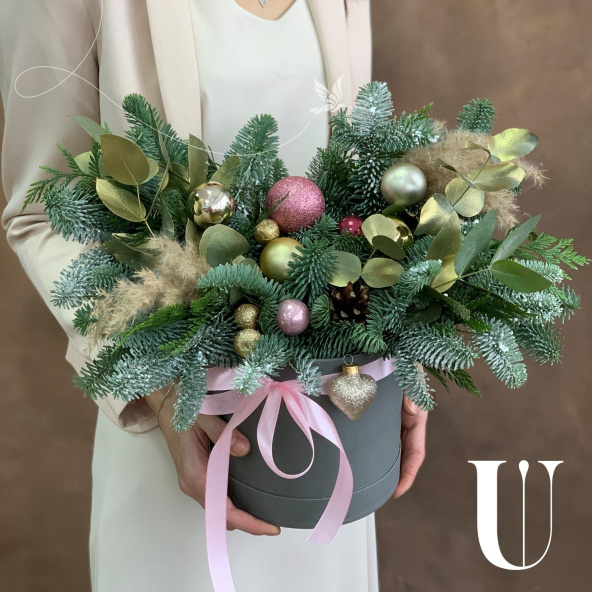 - Шляпная коробка, серая (выс. 17 см, диам. 14 см) - 1 шт