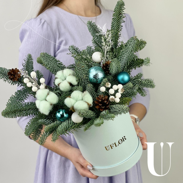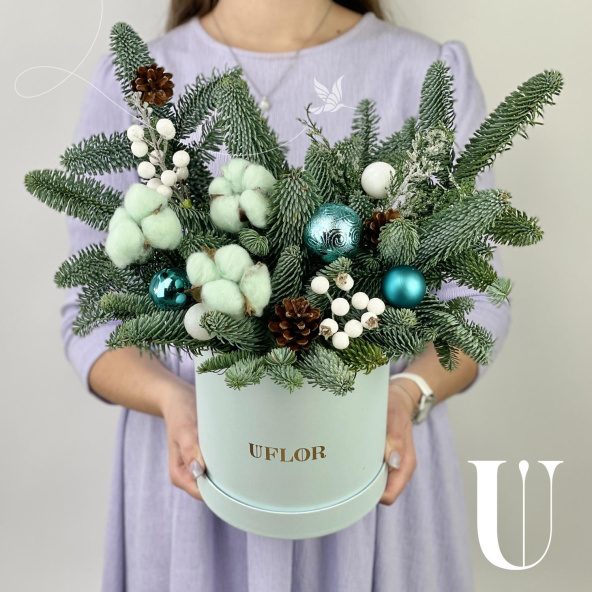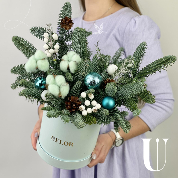 - Шляпная коробка маджестик (U), светло-голубая (выс. 18 см, диам. 16 см) - 1 шт