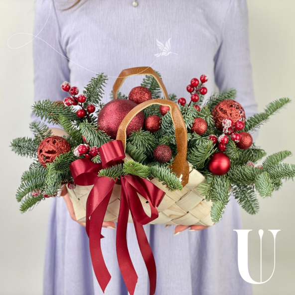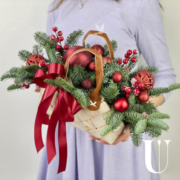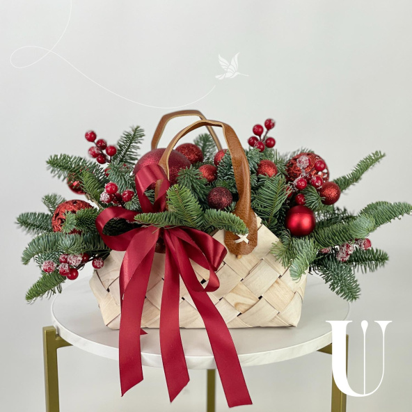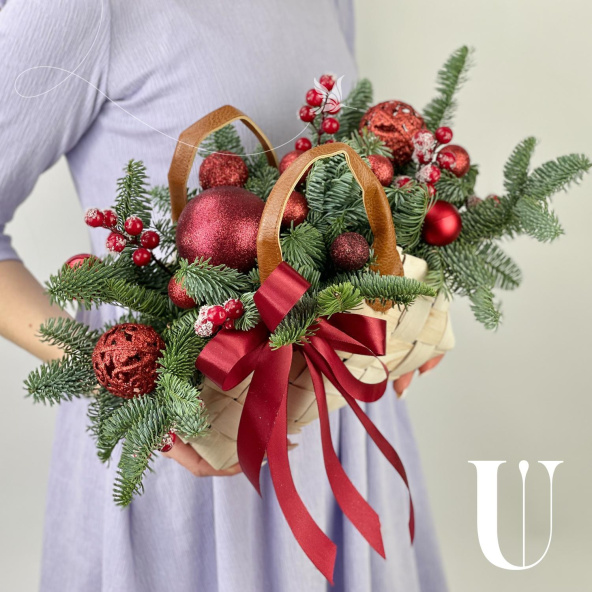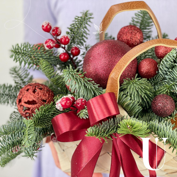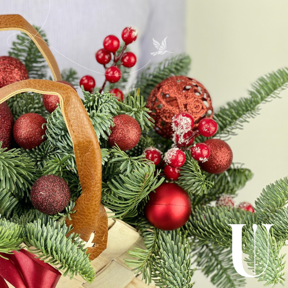 Новогодняя Композиция из живой ели нобилис. Лапник нобилиса отличается высокой стойкостью, он совсем не осыпается, а слегка и незаметно подсыхает сохраняя красивый внешний вид. Композиция из такой ели будет радовать Вас больше месяца и простоит все новогодние праздники! Радуйте себя и своих близких !