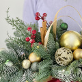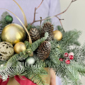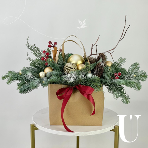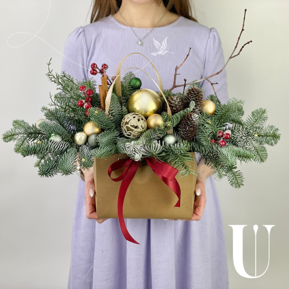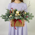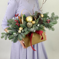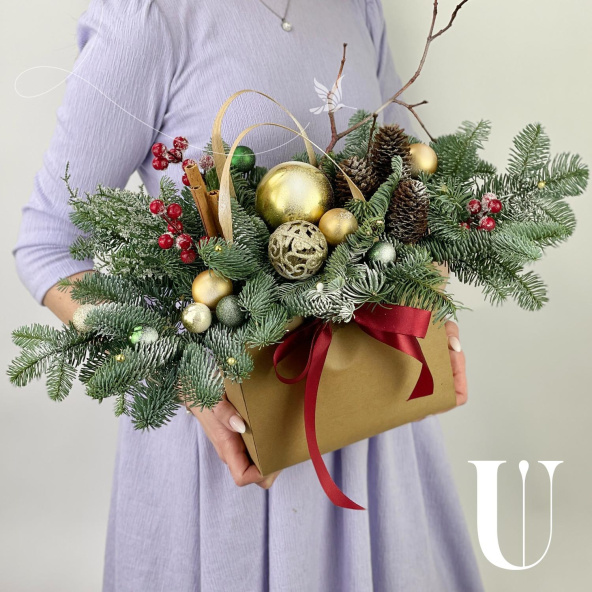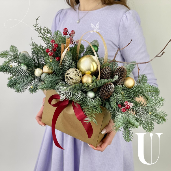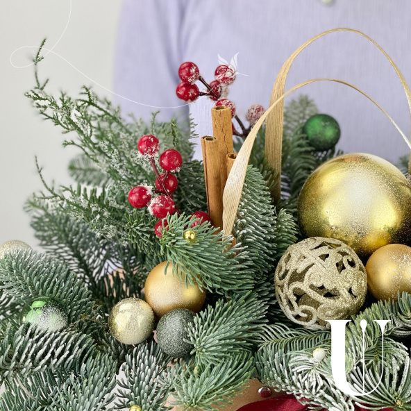 Новогодняя Композиция из живой ели нобилис. Лапник нобилиса отличается высокой стойкостью, он совсем не осыпается, а слегка и незаметно подсыхает сохраняя красивый внешний вид. Композиция из такой ели будет радовать Вас больше месяца и простоит все новогодние праздники! Радуйте себя и своих близких !