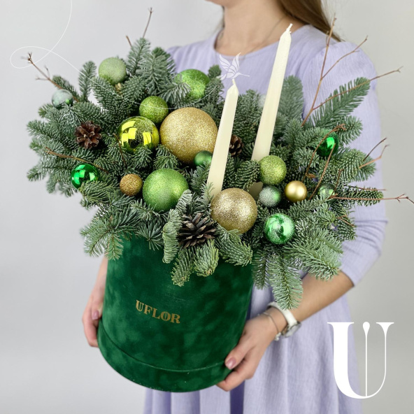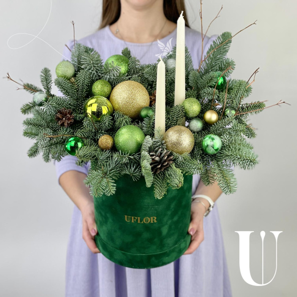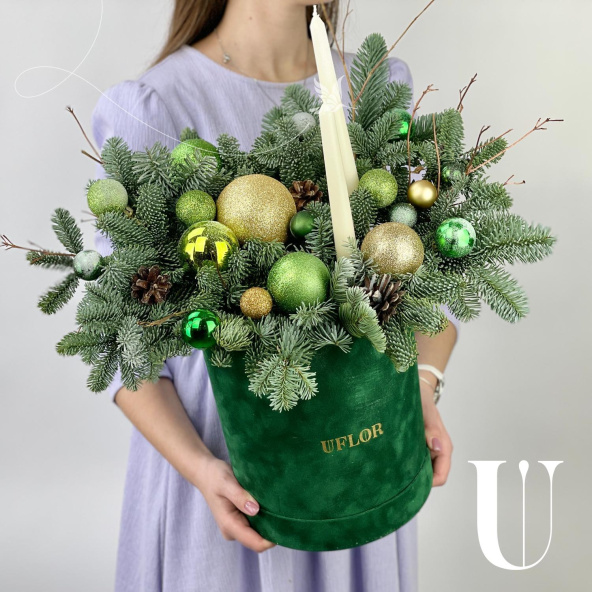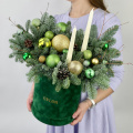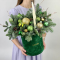 - Шляпная коробка бархатная (U), тёмно-зелёная (выс. 25 см, диам. 20 см) - 1 шт
