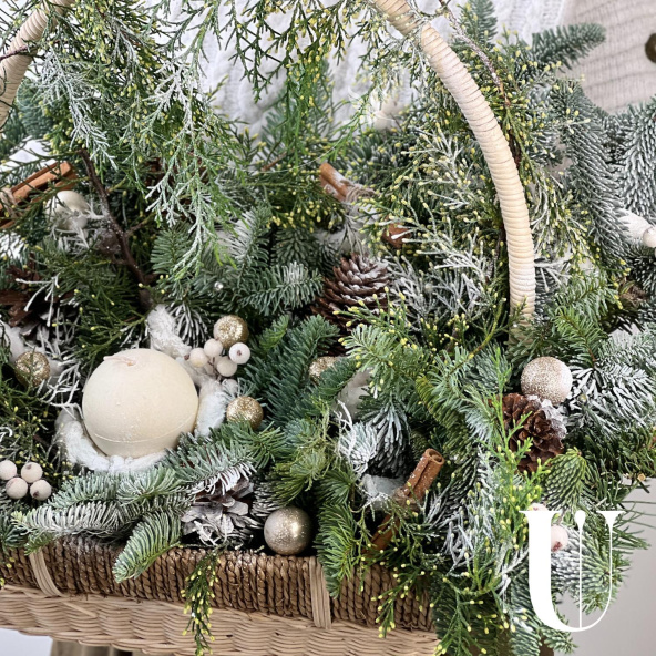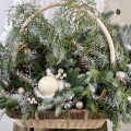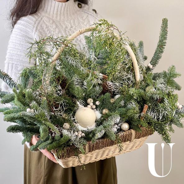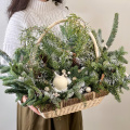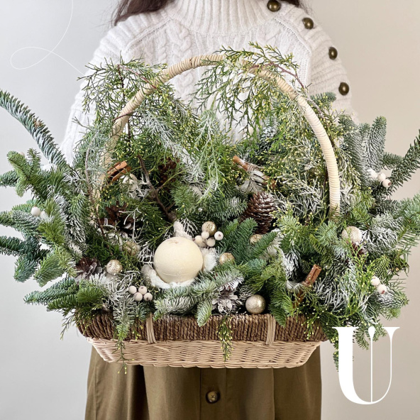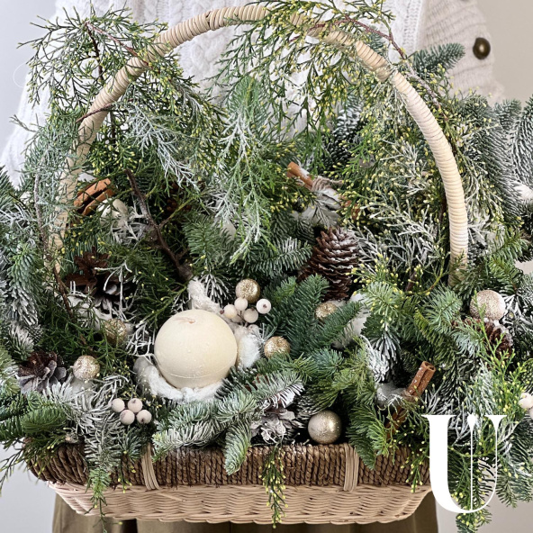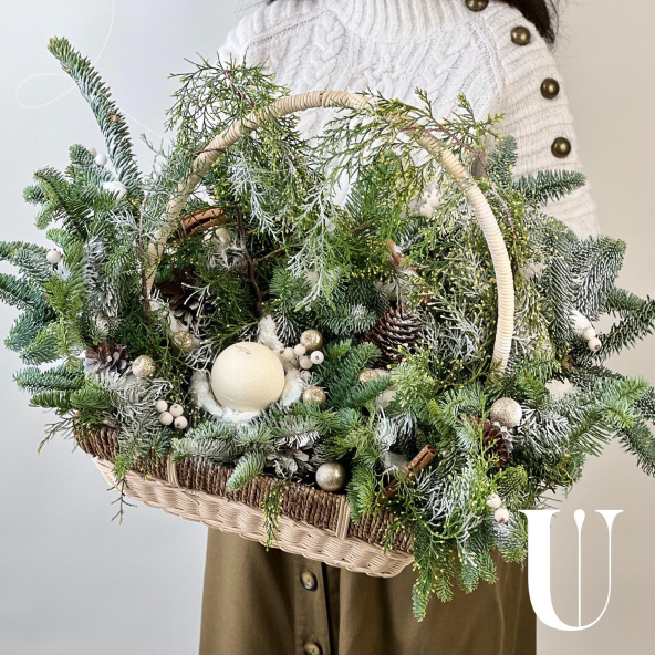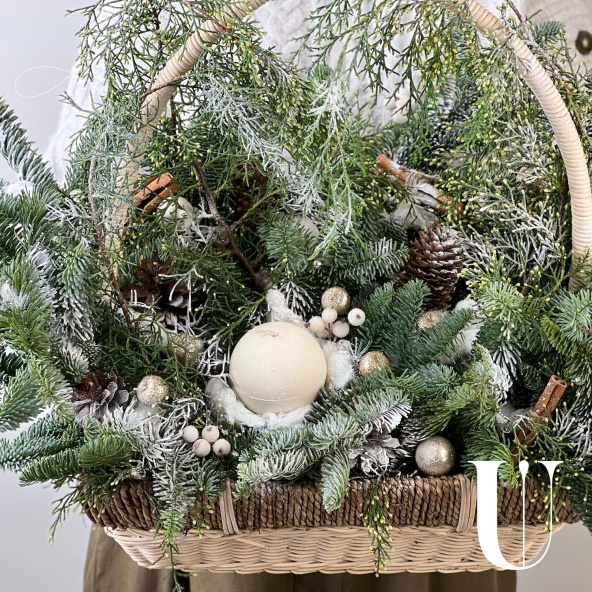 Новогодняя композиция из живой ели нобилис. Лапник нобилиса отличается высокой стойкостью, он совсем не осыпается, а слегка и незаметно подсыхает сохраняя красивый внешний вид. Композиция из такой ели будет радовать Вас больше месяца и простоит все новогодние праздники! Радуйте себя и своих близких!