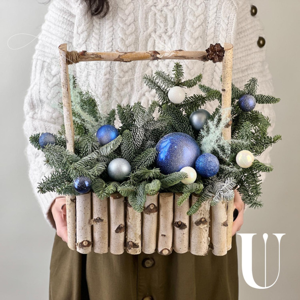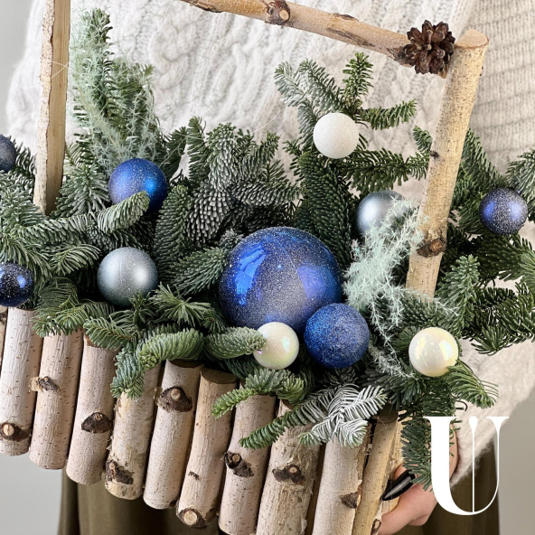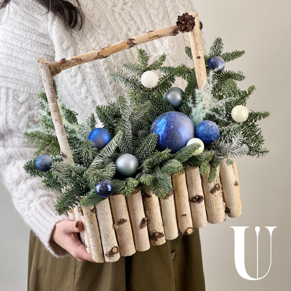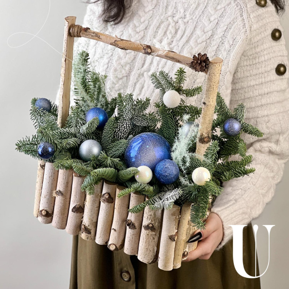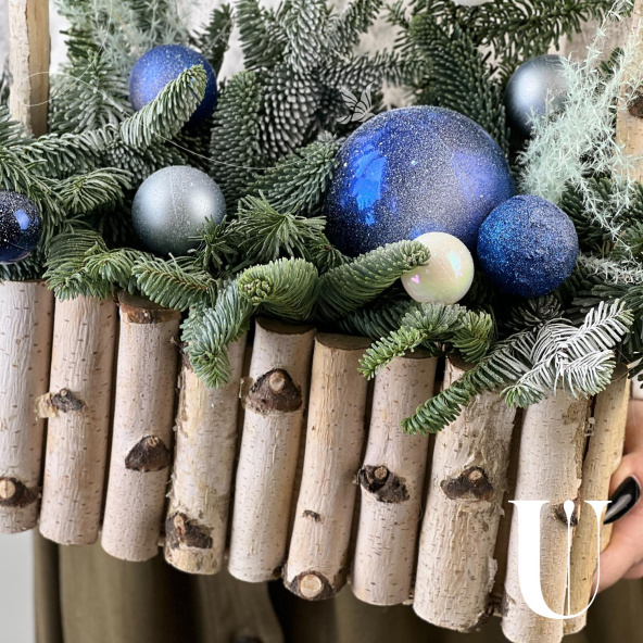 Новогодняя композиция из живой ели нобилис. Лапник нобилиса отличается высокой стойкостью, он совсем не осыпается, а слегка и незаметно подсыхает сохраняя красивый внешний вид. Композиция из такой ели будет радовать Вас больше месяца и простоит все новогодние праздники! Радуйте себя и своих близких!