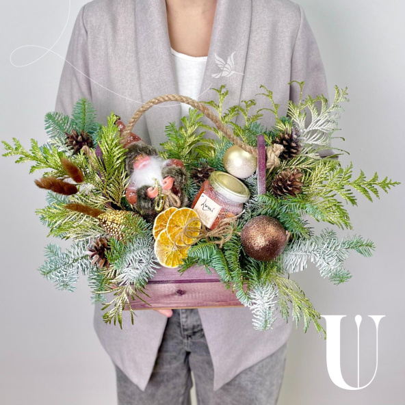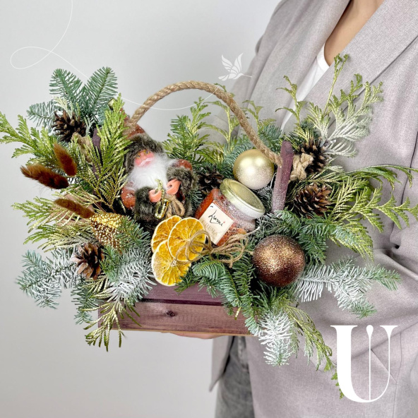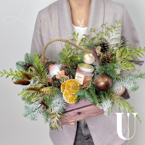 - Ящик деревянный, натуральный (выс. 15 см, выс.с ручкой 25 см, дл.17, шир. 14 см) - 1 шт