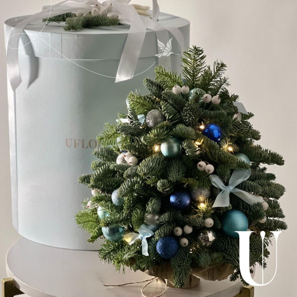 - Шляпная коробка маджестик (U), светло-голубая (выс. 35 см, диам. 30 см) - 1 шт
