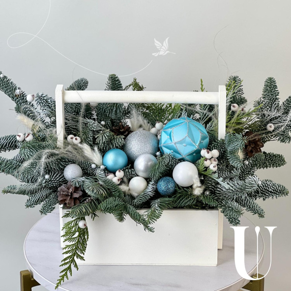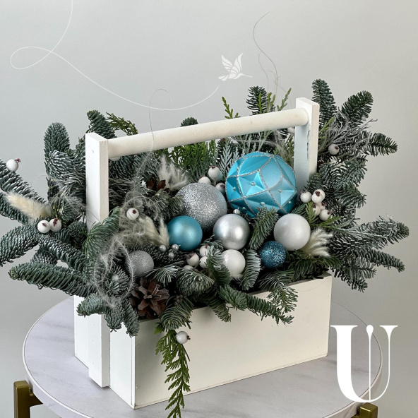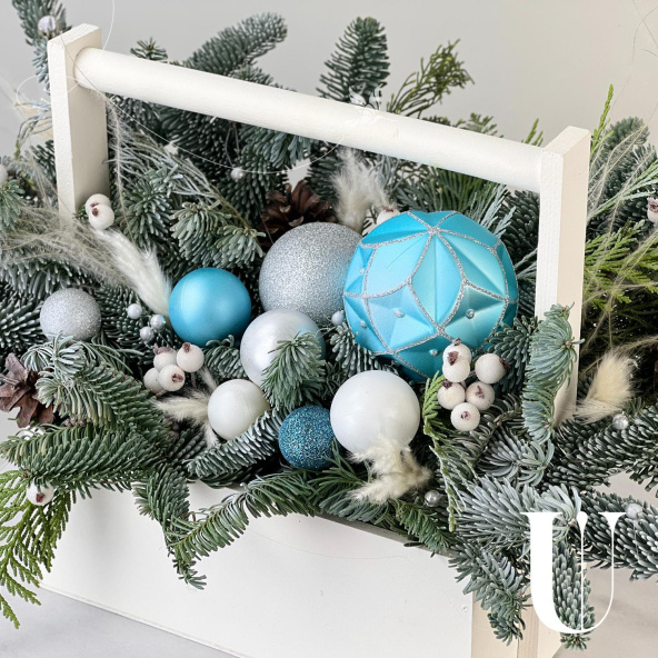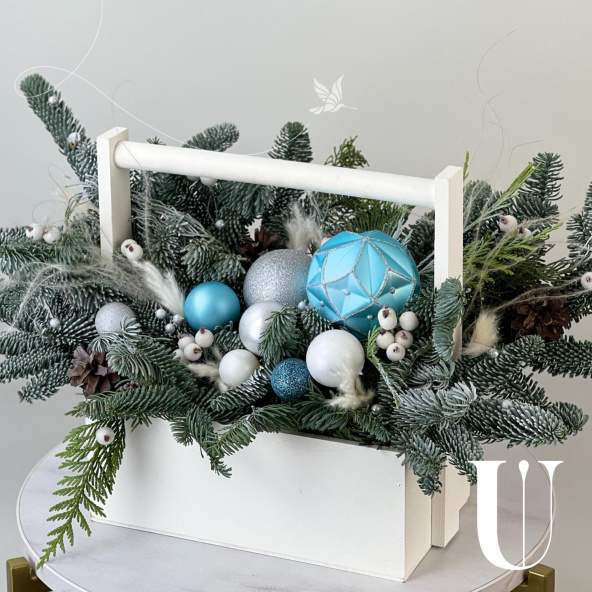 Новогодняя композиция из живой ели нобилис. Лапник нобилиса отличается высокой стойкостью, он совсем не осыпается, а слегка и незаметно подсыхает сохраняя красивый внешний вид. Композиция из такой ели будет радовать Вас больше месяца и простоит все новогодние праздники! Радуйте себя и своих близких!