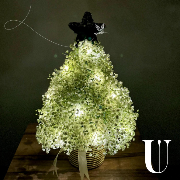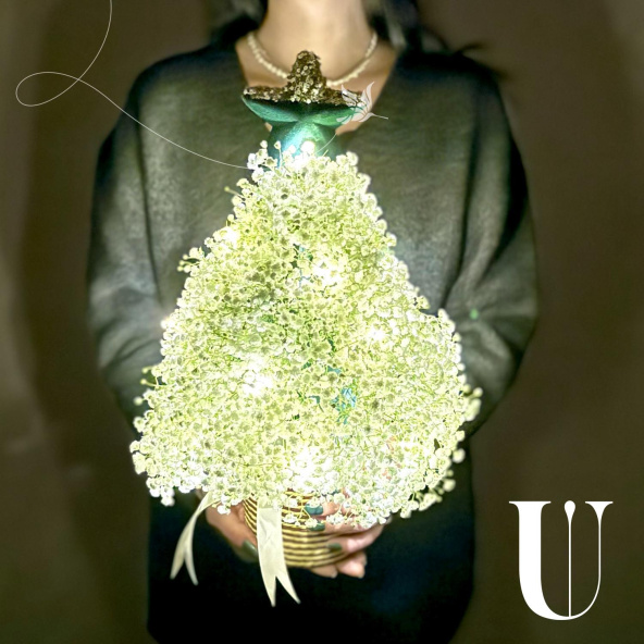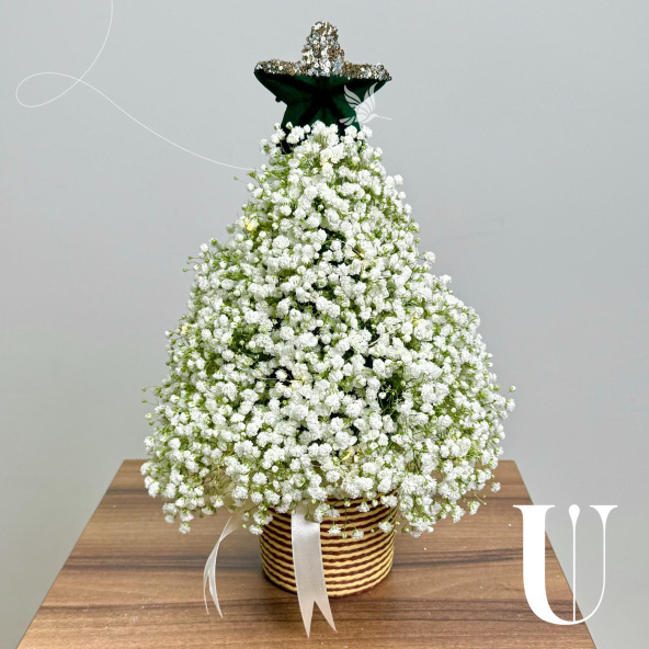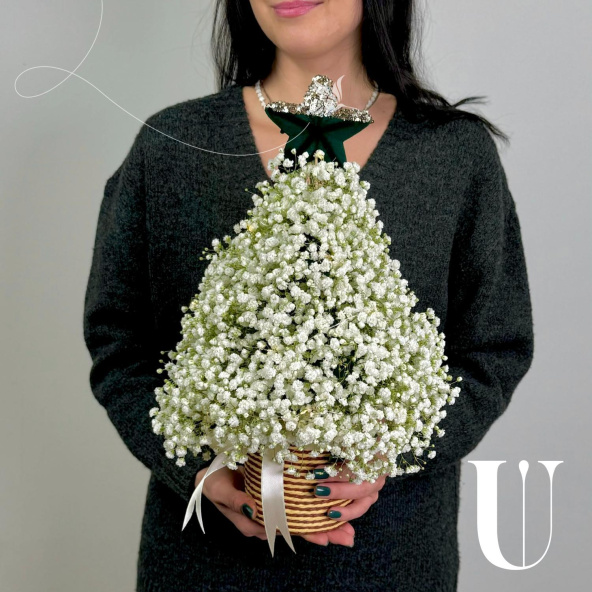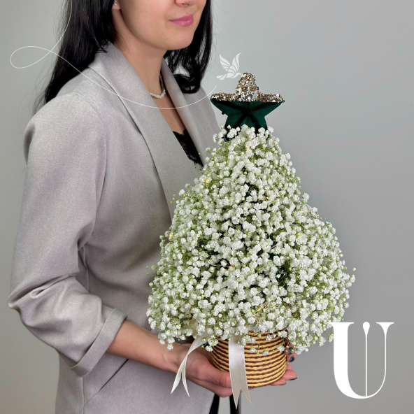 Новогодняя елочка ручной работы из белой пушистой гипсофилы. Прекрасный новогодний подарок, как для себя, так и для близких или коллег.