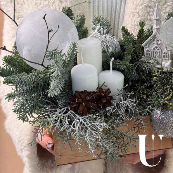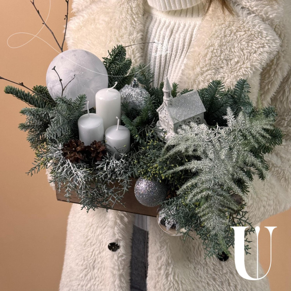 Эта композиция станет прекрасным элементом интерьера и подарит вам незабываемые эмоции. Эта композиция будет радовать вас и ваших гостей на протяжении всех зимних месяцев, напоминая о чудесах новогодней ночи.