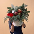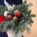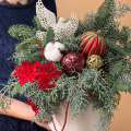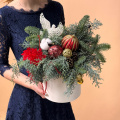 Новогодняя композиция «Вестник праздника» представляет собой изысканное сочетание нобилиса, голубого кипариса, фигурки белой голубки и новогодних шаров, которое создаёт атмосферу волшебства и уюта.