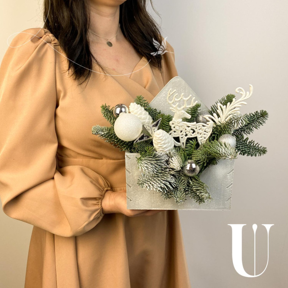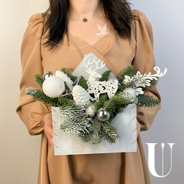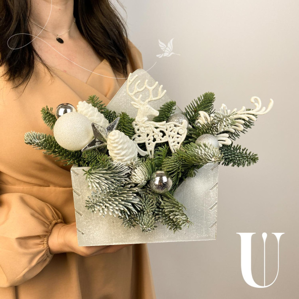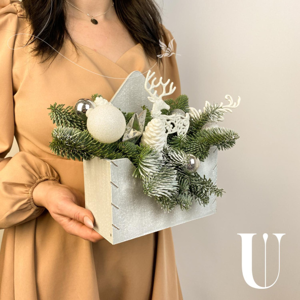 Красивая новогодняя композиция, выполненная в деревянном ящике-конверте! Станет прекрасным подарком для ваших близких! Принесет уют и новогоднее настроение!