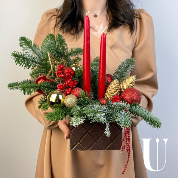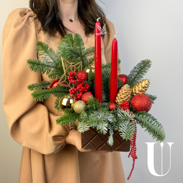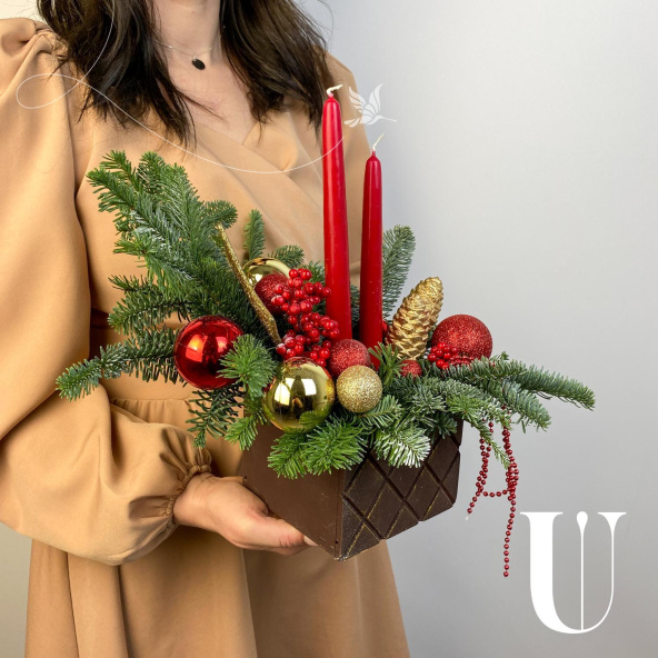 Красивая новогодняя композиция, выполненная в деревянном ящике! Станет прекрасным подарком для ваших близких! Принесет уют и новогоднее настроение!