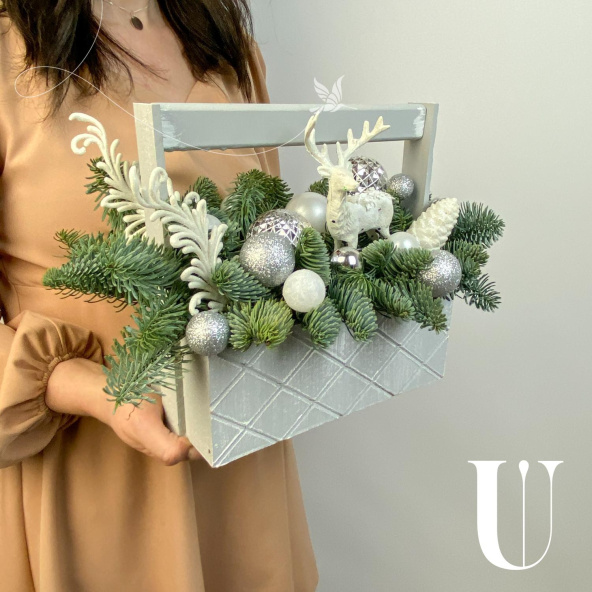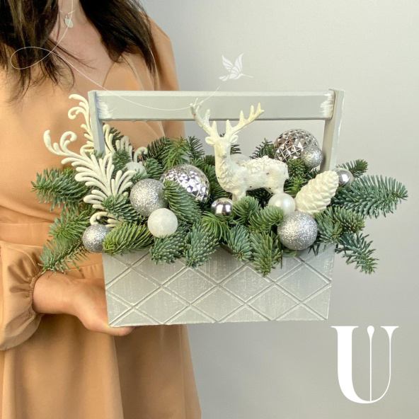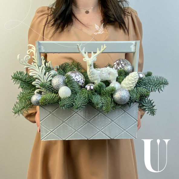 Красивая новогодняя композиция, выполненная в деревянном ящике! Станет прекрасным подарком для ваших близких! Принесет уют и новогоднее настроение!