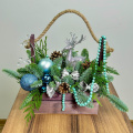 Новогодняя композиция из лапника и новогодних украшений в деревянном ящике