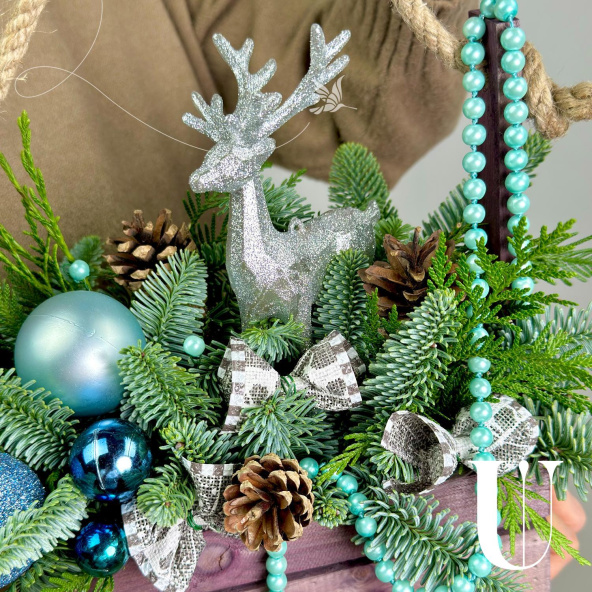 Новогодняя композиция из можевельника, нобилиса, шишек и шаров