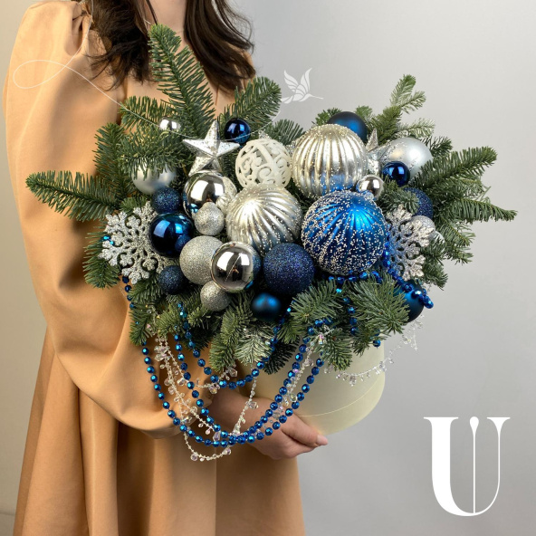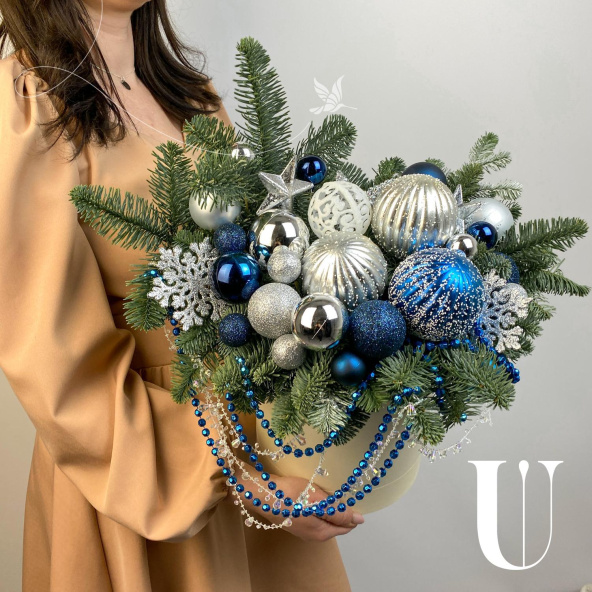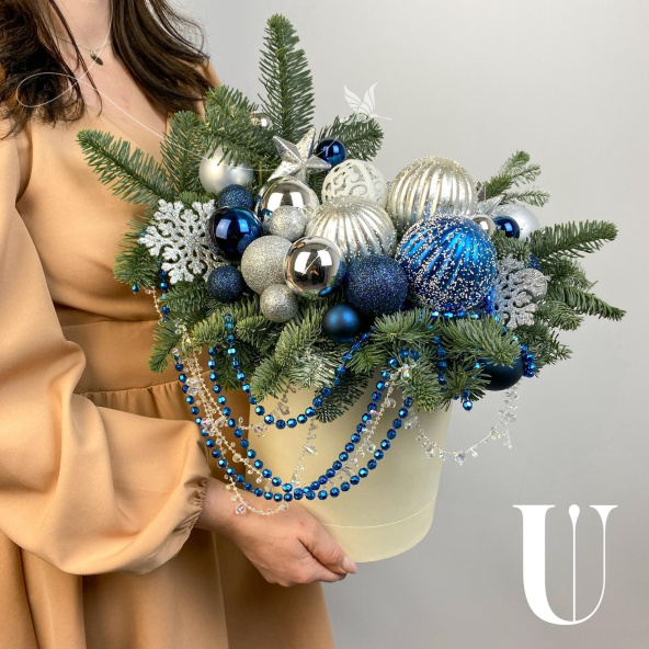 Новогодняя композиция в шляпной коробке! Украсит ваш дом и станет прекрасным подарком вашим близким!